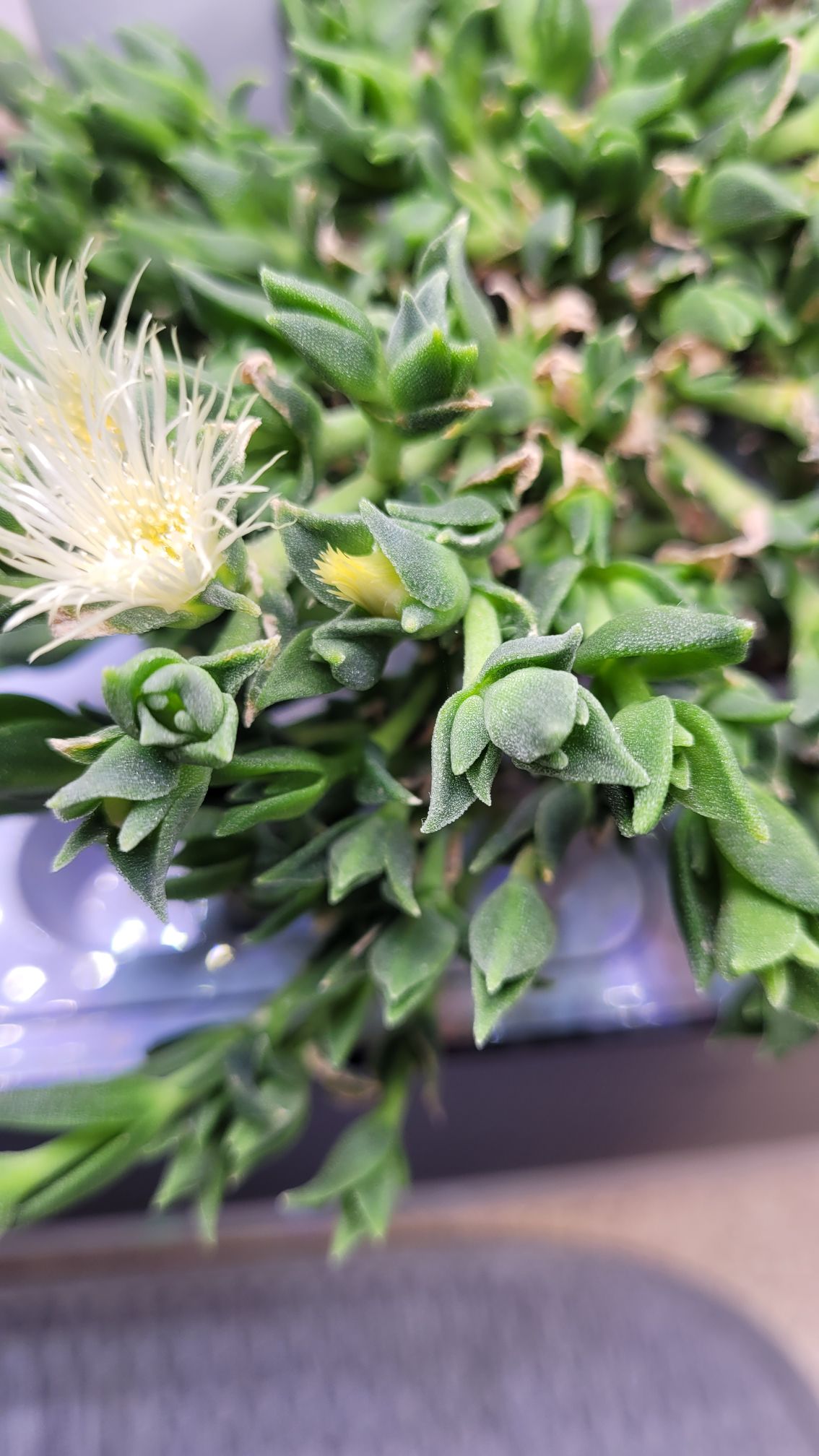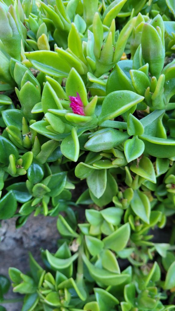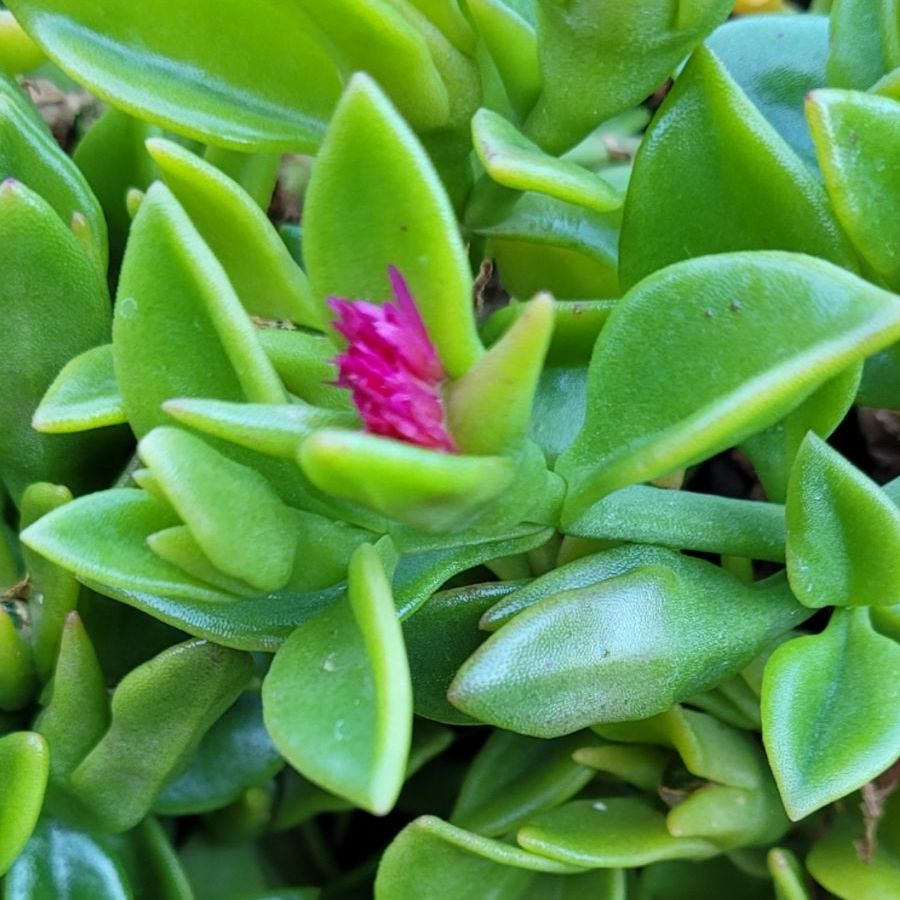 The two plants are from the same family Mesembryanthemum, but they have some key differences that help to distinguish them: flower color, leaf shape, and in some cases leaf color.