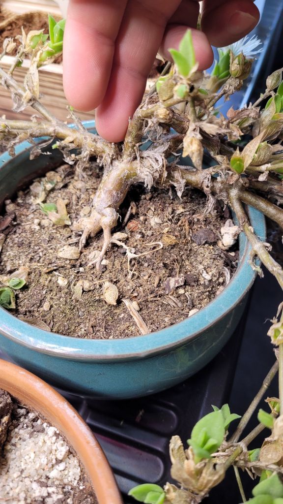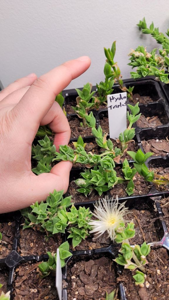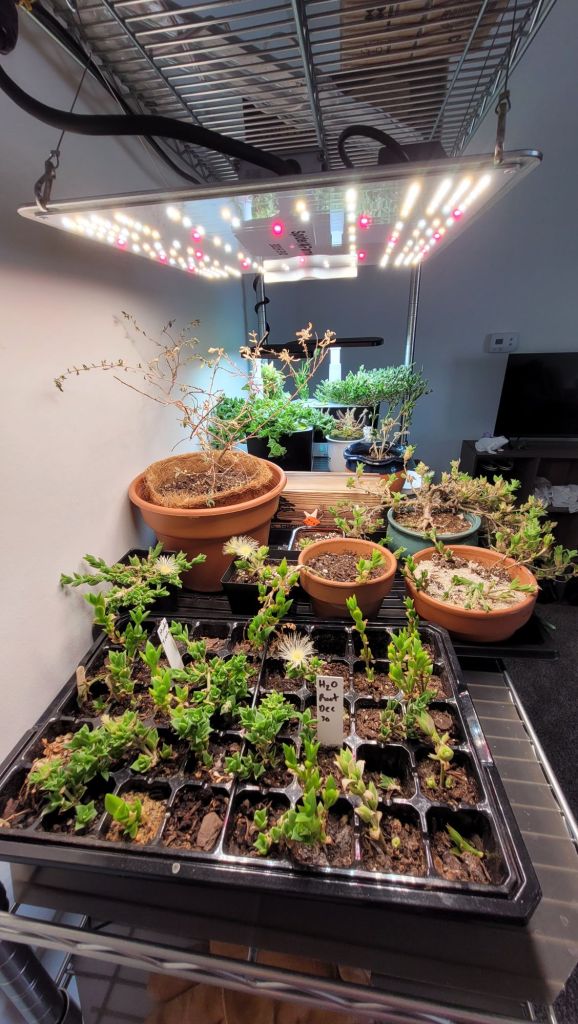 The plant with the “H2O root Dec 30” tag is the one from my Rooting Kanna in Waterarticle. There’s a bit of growth, but not much. The roots have anchored it in the soil pretty well though, which was my main goal for that cutting.