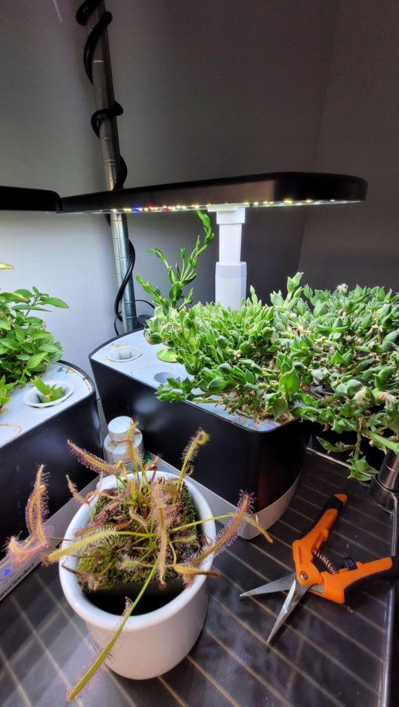 Both my Aerogardens are doing great. My basil/kanna garden had one of the basil plants die due to over harvesting, so I had to remove the roots. I am glad I removed the roots when I did as it looked like they were going to start decaying. I wanted to avoid any issues with decay both for my plants’ sake and mine as I don’t want to stink up my planting area.