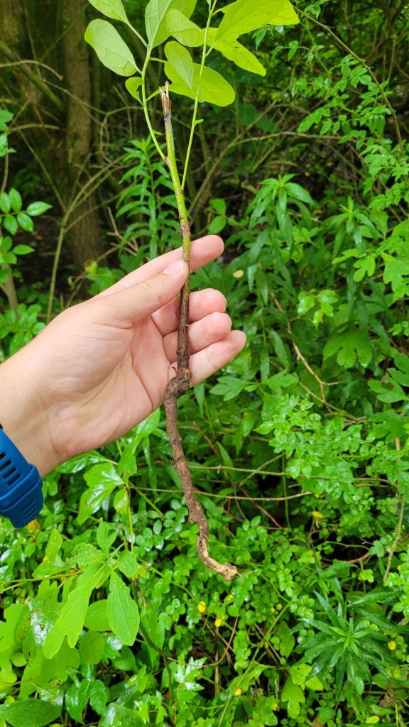 From what I’ve been able to find, it is difficult to propagate sassafras from seeds or from stem cuttings. Many plants readily propagate from stem cuttings. However, in my attempts to propagate sassafras from stem cuttings, I have had no success. I have not tried seed propagation, but from my research into the topic, it is quite difficult to get sassafras to grow from seed. And since I’m looking to grow these trees in a forest, I want to give these trees a strong chance to take hold with minimal competition from the surrounding plants. Thankfully, I have had some success from taking root cuttings
